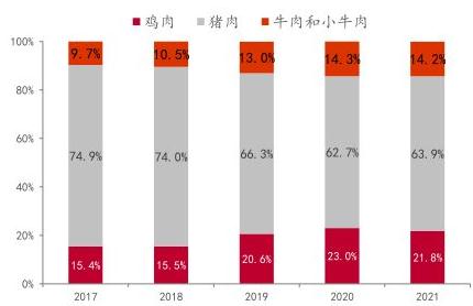 图表:2017-2021年我国肉类消费结构变化