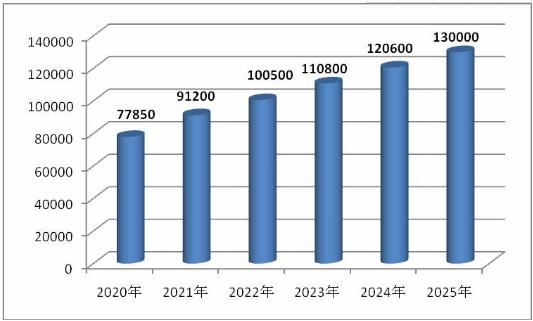 图表:2023-2025年中国网购市场规模预测(亿元)