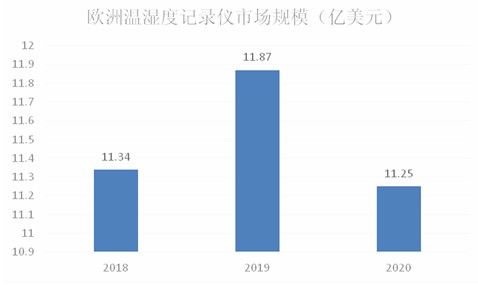 温湿度记录仪全球市场规模分部来看,欧洲在全球市场规模占比中仅次于北美地区,其地区市场规模维持在11亿美元以上水平,受疫情影响,其市场规模萎缩至11.25亿美元水平。