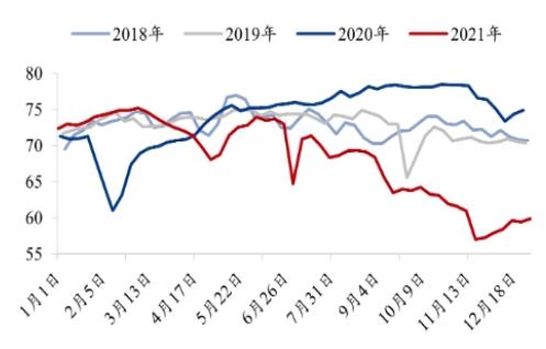 图表:2018-2021年全国焦炭日产量情况(单位:万吨)