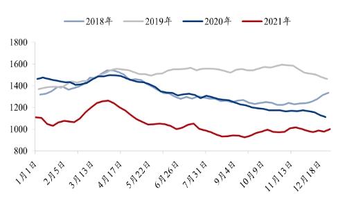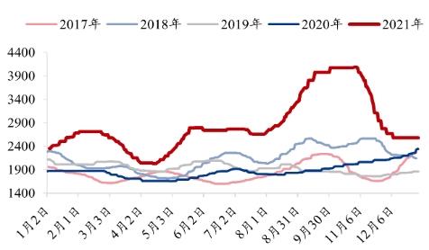 图表:2017-2021年我国焦炭价格走势情况(单位:元/吨)
