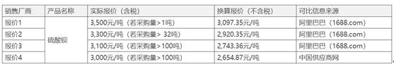 经查询公开市场资料,硫酸钡的市场价格如下:
