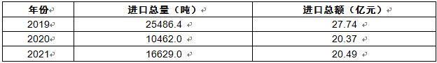 根据国家海关总署的相关数据,2019-2021年中国中药配方颗粒行业进口总量及进口总额情况如下表所示: