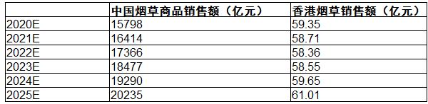 数据来源:中研普华产业研究院(注:中国香港烟草销售额不含出口,仅限本地居民消费商品的销售额)
