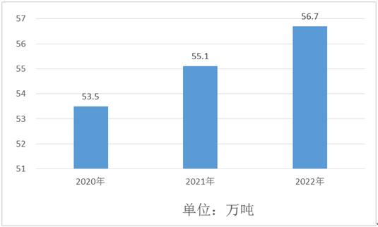 目前我国的香精香料生产企业超过1000家,香精香料产品品种不断增加,企业运行质量进一步得到提升,根据相关数据显示,2022年中国香精香料行业产量为56.7万吨,同步增长2.9%。