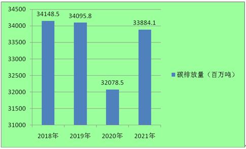 图表:2018-2021年全球碳排放规模