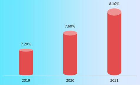 2019-2021年全钒液流电池行业产值利税率由7.2%上升到8.1%。