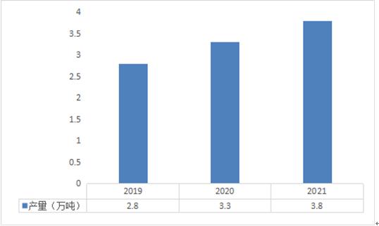 图表:2019-2021年国内高温合金产量(单位:万吨)