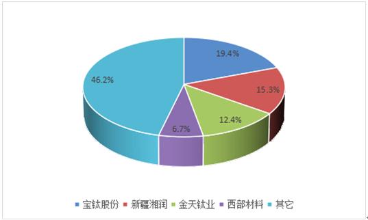 图表:国内钛材料主要供应商及其产能份额