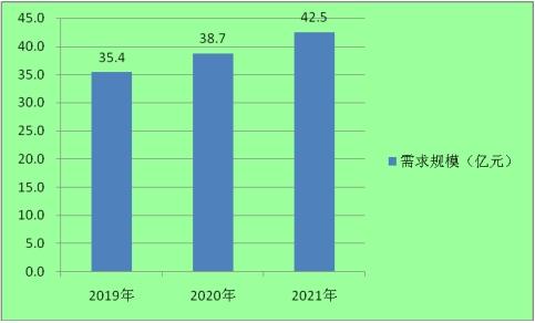 图表:2019-2021年军工线缆市场需求规模(亿元)