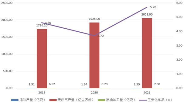 图表:2019-2021年石油化工产量分析