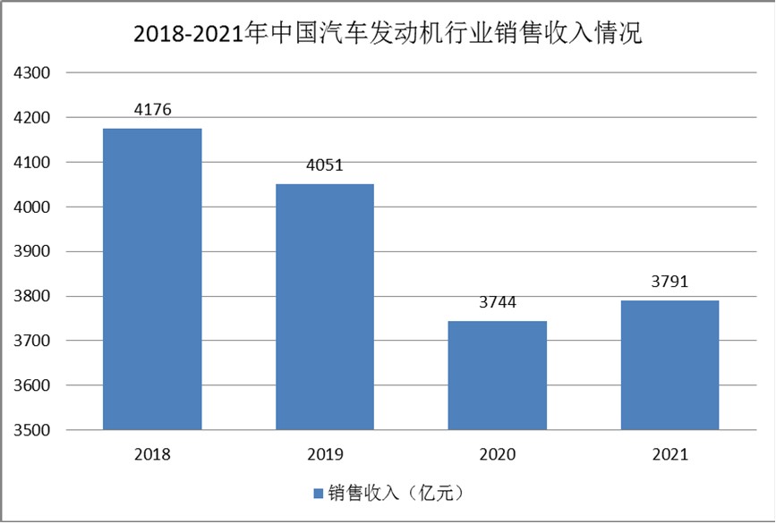 2021年,国内汽车发动机行业销售收入约为3791亿元,较2020年上涨了1.26%。对汽车发动机行业的销售收入统计包括在国内市场的销售额和产品的出口额。我国汽车发动机的出口量每年都在100-200万台之间,产品出口是国内汽车发动机生产企业的销售渠道之一。