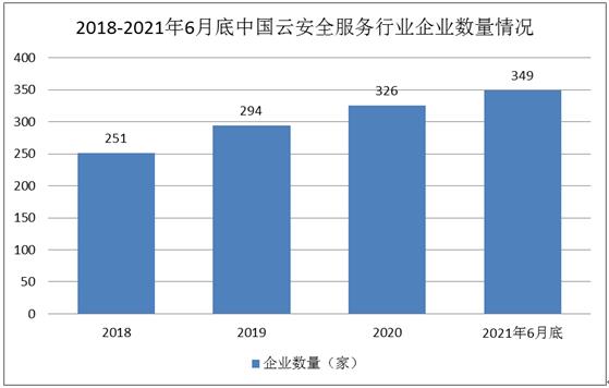 近年来,整个云安全服务市场发展较快,传统的网络安全供应商也逐渐向云安全服务进行靠拢,纷纷开展云安全服务相关业务,为整个市场增添了新的活力。截至2021年6月底,国内云安全服务行业中企业数量约有349家,服务水平也有一定的提高。