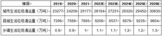 环卫行业垃圾收集清运总量