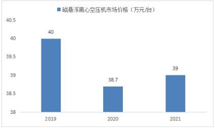 2019-2021年磁悬浮离心空气压缩机产品价格呈现波动状态,2021年磁悬浮离心空压机价格为39万元/台,同比增长0.78%。