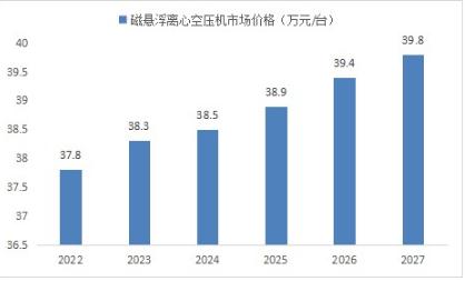 随着节能减排产业政策的不断推进,对磁悬浮离心空压机的需求将进一步增长,直接推动产品价格的上升,预计2022-2027年磁悬浮离心空压机产品价格将呈现逐年增长趋势,2027年产品价格将达39.8万元/台,较2022年同比增长5.3%。