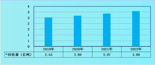 图表:2019-2022年中国废旧金属回收总量