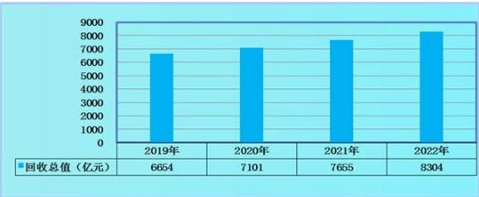 图表:2019-2022年中国废旧金属回收总值