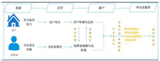 通过平台生态化战略提供多元化增值服务逐渐成为支付行业发展主流。平台化模式 有别于传统的服务佣金模式,在这种业务逻辑中,平台通过多元化的增值服务来实现综 合性收益,要同时满足 C 端用户和 B 端商户的需求。对 C 端用户来说,平台需要开拓 更多的场景来满足消费者需求,吸引流量,提高消费者规模和活跃度,以实现平台的规 模经济效应。对 B 端商户来说,平台要增强为商户提供多元服务的能力,满足商户数字 化经营需求,优化商户的服务品质。