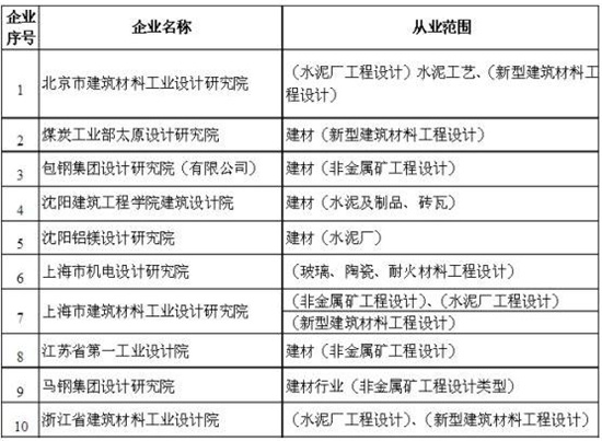 目前,我国主要建材工程勘察设计单位以及排名情况如下表所示: