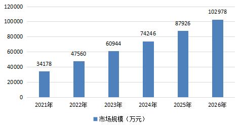 据数据显示,预测2021年重载户外AGV行业市场规模为34178万元,2025年重载户外AGV行业市场规模为102978万元,预测2021-2026年重载户外AGV行业市场规模复合增长率为24.68%。