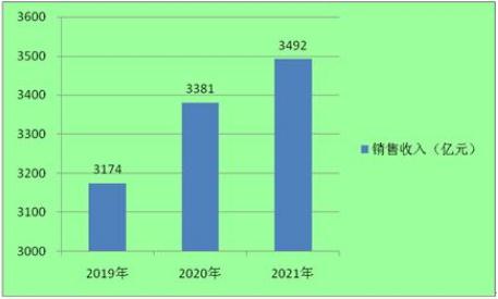 图表:2019-2021年我国规模以上水务企业销售收入