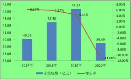 镍氢电池是早期的镍镉电池的替代产品,在电化学特性方面与镍镉电池基本相似,且释放能量强,不含有毒物质,可实现对镍镉电池的替代。尽管锂离子电池对镍氢电池又产生了比较大的替代效应,但镍氢电池凭借性能稳定、工艺成熟的优势,客户在某些领域如安防和医疗等行业依然喜欢应用镍氢电池,2019年行业市场规模约为44.37亿元,受疫情影响,预计到2020年行业市场规模略有下降,为39.49亿元。