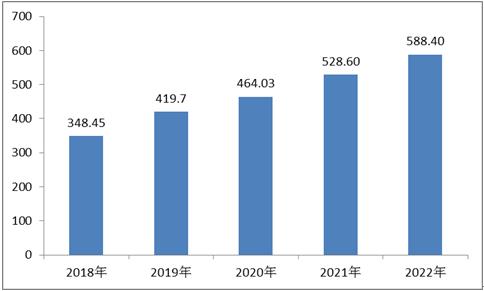 图表:2018-2022年中国网络安全设备行业规模(单位:亿元)