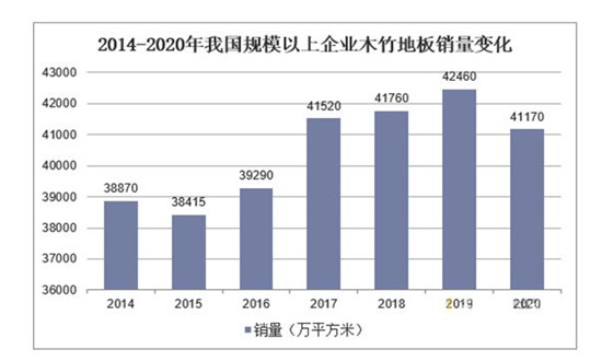 图表:2014-2020年我国规模以上企业木竹地板销量变化