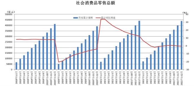2022年1-12月,社会消费品零售总额439733亿元,同比下降0.2%。其中,除汽车以外的消费品零售额393961亿元,下降0.4%。按经营单位所在地分,2022年城镇消费品零售额380448亿元,比上年下降0.3%;乡村消费品零售额59285亿元,与上年基本持平。按消费类型分,2022年商品零售395792亿元,比上年增长0.5%;餐饮收入43941亿元,比上年下降6.3%。