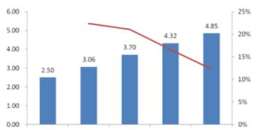 数据显示,软件行业实现利润总额7020亿元,比2016年增长15.8%,提高2.1个百分点,高出收入增速1.9个百分点。分季度来看,一至四季度利润总额增速分别为9.6%、14.2%、15.6%和21.2%,呈逐步上升态势,可见我国信息化进程仍具有较大的市场空间。