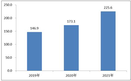 图表:2019-2021年LED照明产品的贸易顺差金额(单位:亿美元)