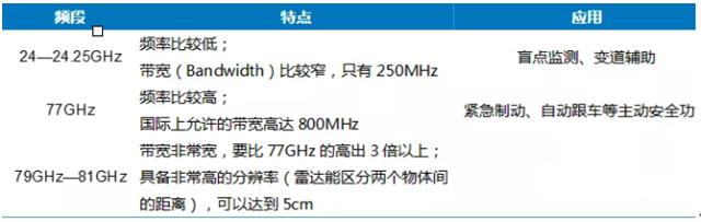 图表:不同频率车载毫米波雷达对比