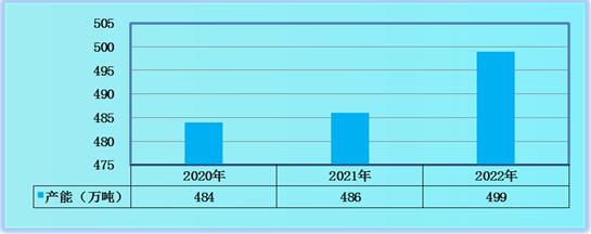 图表:2020-2022年中国氟化工行业产能