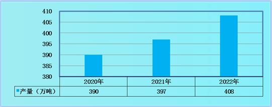 图表:2020-2022年中国氟化工行业产量