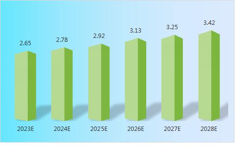 图表:2023-2028年转子压缩机产量预测(亿台)