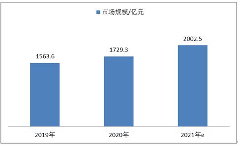 图表:2019-2021年中国网络安全行业市场规模