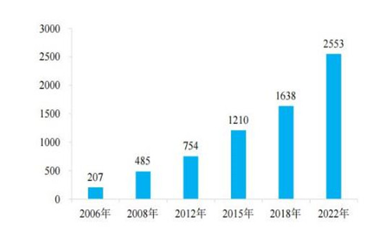 图表:2006年-2022年历次调查全国物流园区数量情况
