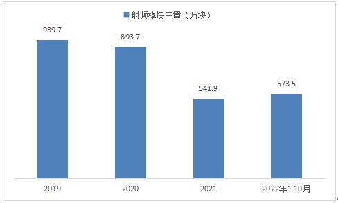 从国家统计局数据显示,2021年全年产量达541.9万射频模块,同比下滑39.36%。受疫情影响,国内射频元器件整体产能受挫,整体产量下降。