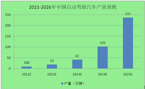 图表:2021-2026年中国自动驾驶汽车产量预测
