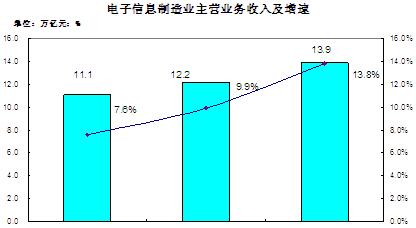 规模以上电子信息制造业增加值比2016年增长13.8%,增速比2016年加快3.8个百分点;快于全部规模以上工业增速7.2个百分点,占规模以上工业增加值比重为7.7%。其中,12月份增速为12.4%,比11月份回落2.6个百分点。