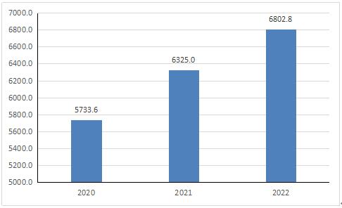 2020年市场需求量为6569.62亿元,2021年为6695.94亿元,同比增长1.92%,2022年则是为6519.32亿元,同比下降2.63%,近三年来复合增长率为0.38%。