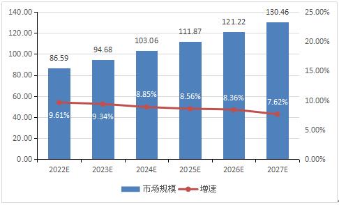 图表:2022-2027年国内玻璃水行业市场规模及增速预测