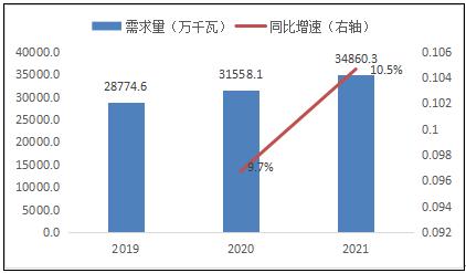 根据市场调研数据分析,2019-2021年中国工业电机行业产量呈现逐年增长趋势,2021年需求规模为3860.3万千瓦,同比增长10.5%。