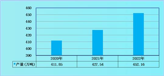 图表:2020-2022年中国耐磨钢球行业市场产量规模