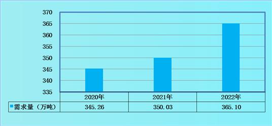 图表:2020-2022年中国耐磨钢球行业市场销量规模(单位:万吨)