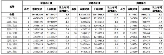 各机场中,年货邮吞吐量10000吨以上的机场有59个,与2020年持平,完成货邮吞吐量占全部境内机场货邮吞吐量的98.6%,占比较2020年同期提高0.2个百分点;从增速看,保持正增长的机场有27个,降幅在10%以内的机场有12个,降幅在10-20%的有10个,降幅在20-30%的有7个,降幅在30-40%的有1个,降幅在40-50%的有2个。