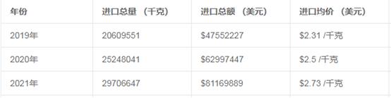 根据中国海关数据,2019-2021年,中硼硅玻璃的进口数量、进口金额和进口均价都呈现出增长的趋势。