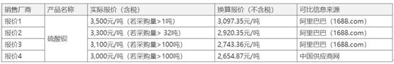 经查询公开市场资料,硫酸钡的市场价格如下: