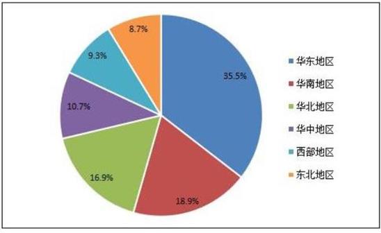 裸眼3D显示器行业华东地区投资占比35.5%,华南地区占比18.9%,华北地区在尕布16.9%。